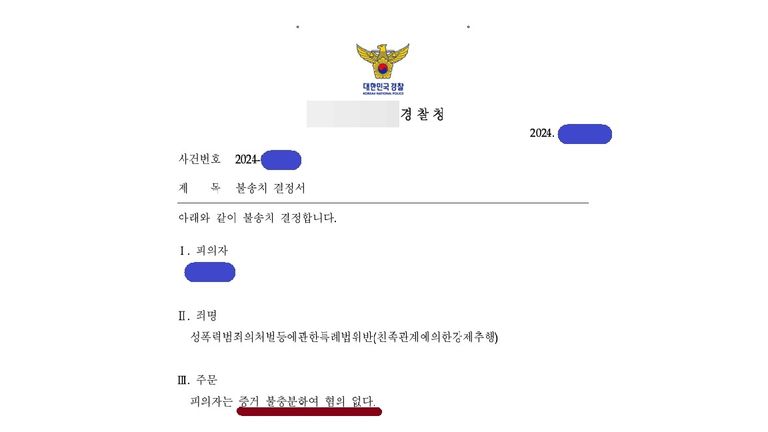 결과는 해당 혐의에 대한 불기소 처분이었습니다.