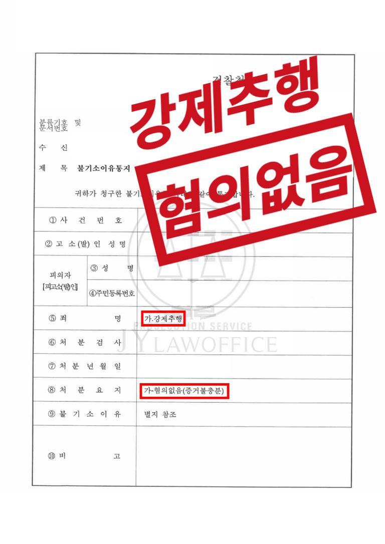 이와 같은 변호인의 노력에 따라, 의뢰인은 '혐의없음' 처분받고 무사히 사건을 종결시킬 수 있었습니다.