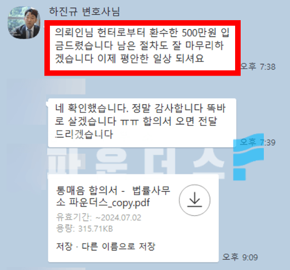 사건화 되는 것이 두려웠던 의뢰인은 500만원을 입금하였지만 그럼에도 고소를 당할까 두려운 마음에 변호인의 조력을 요청하였습니다.