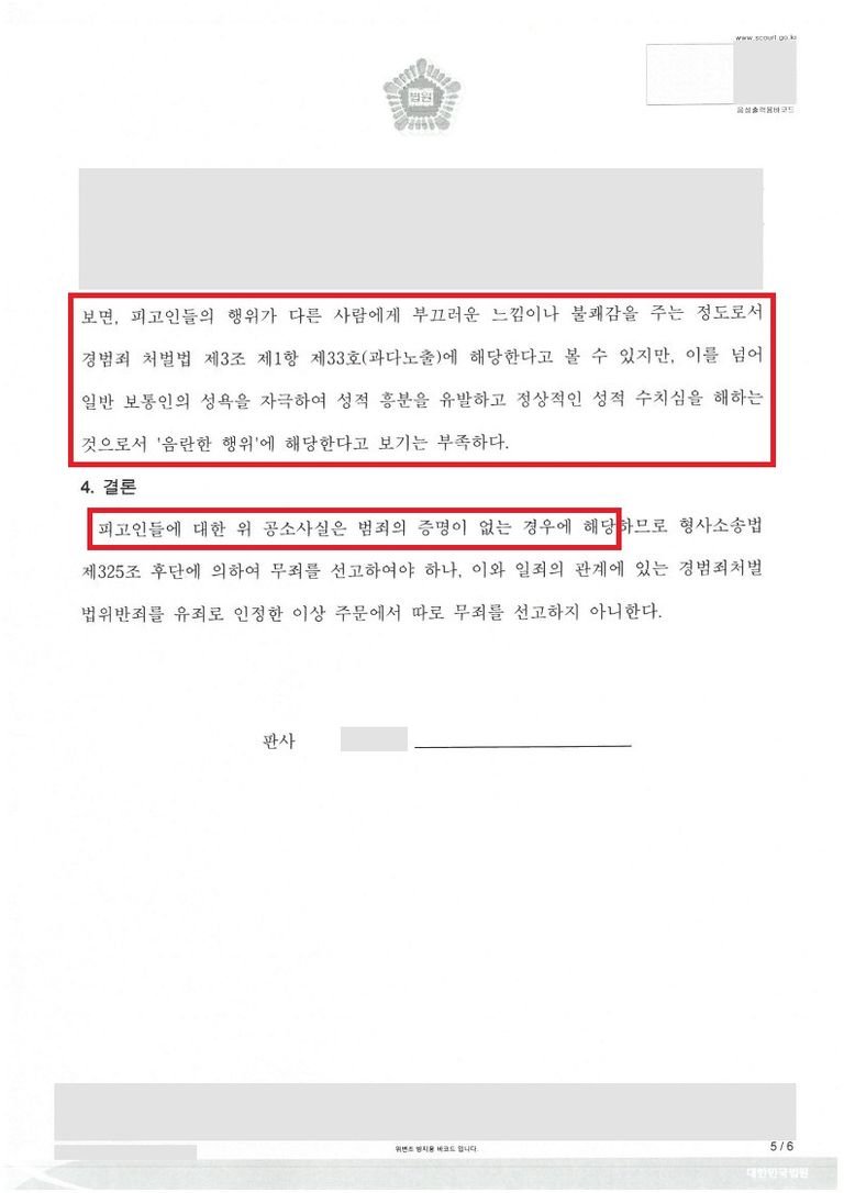 2. 예우의 조력 : 공연음란죄에 대하여 무죄 선고