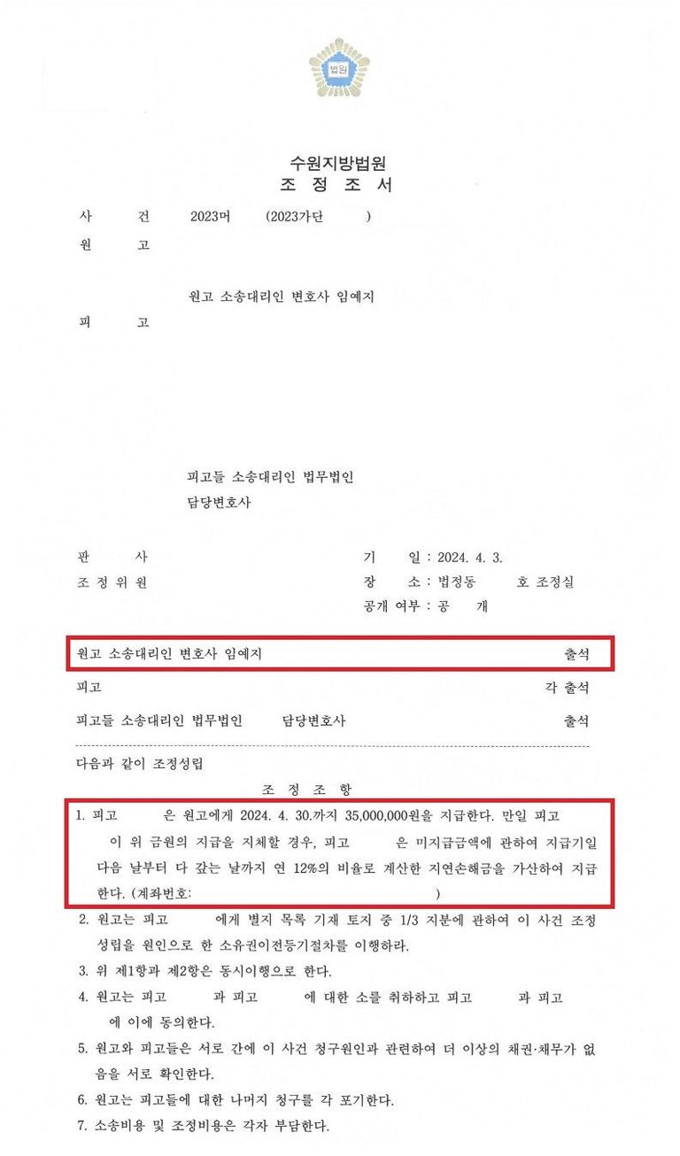 또한 사전증여 토지의 가액과 관련하여서도 양 당사자간 한 치 양보 없는 팽팽한 의견대립이 있었으나, 법률사무소 예우의 적극적인 조력 끝에 내내 원고의 청구를 부인하던 피고는 결국 조정기일에서 유류분을 반환할 것을 약속했고 양 당사자간의 조정이 이루어져 형제들간의 다툼이 무사히 종결될 수 있었습니다.