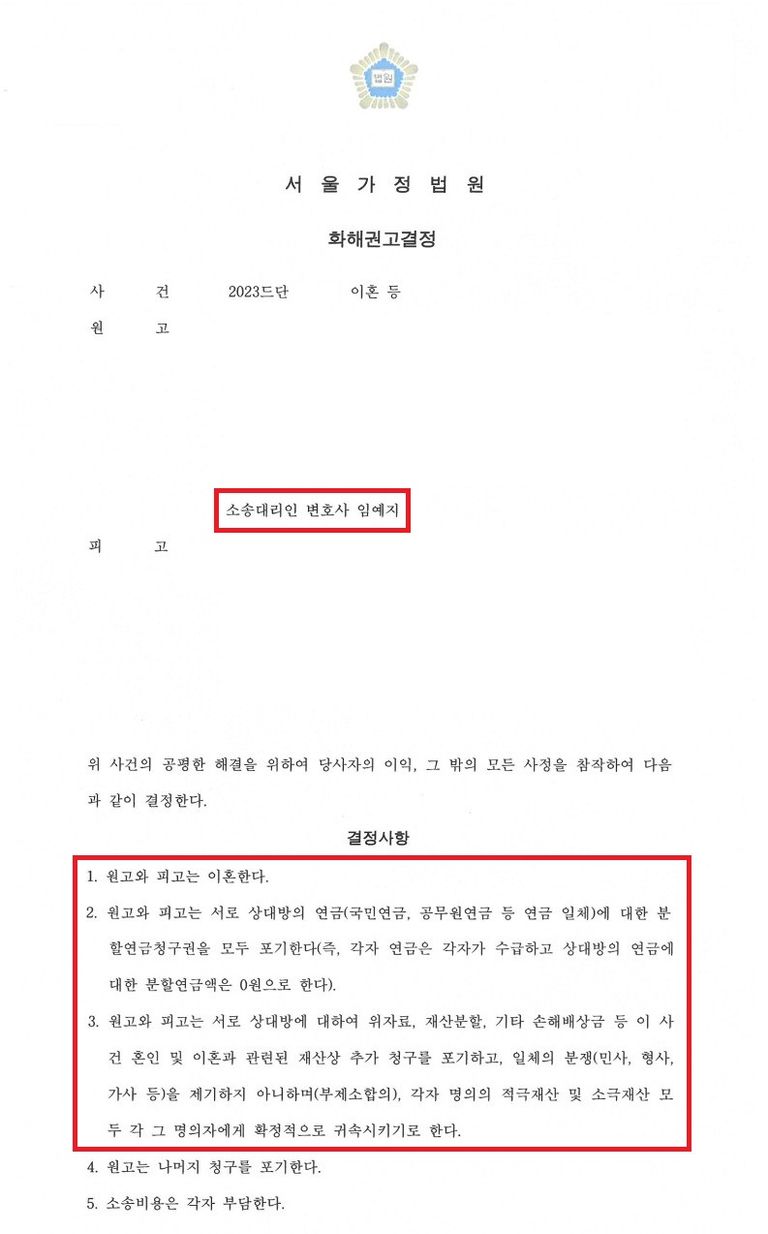 저는 피고의 불성실한 재판태도를 지적하며 재판부에 ‘각자 명의 재산을 각자가 보유하기로 하는 내용’의 화해권고결정을 내려주실 것을 적극 요청드렸고,