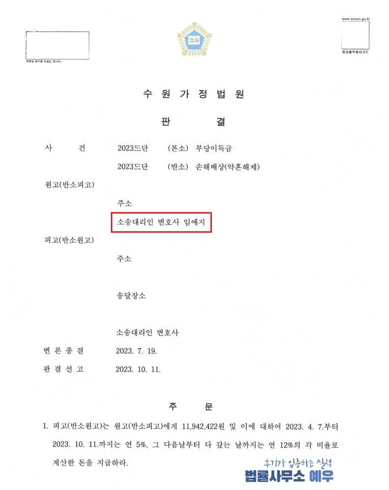 3. 법률사무소 예우의 조력 - 본소 및 반소 전부 승소