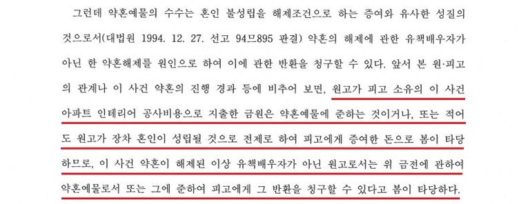 2. 파혼(약혼해제)에 따른 부동산 구입비용 및 인테리어 공사비용 반환청구 소송