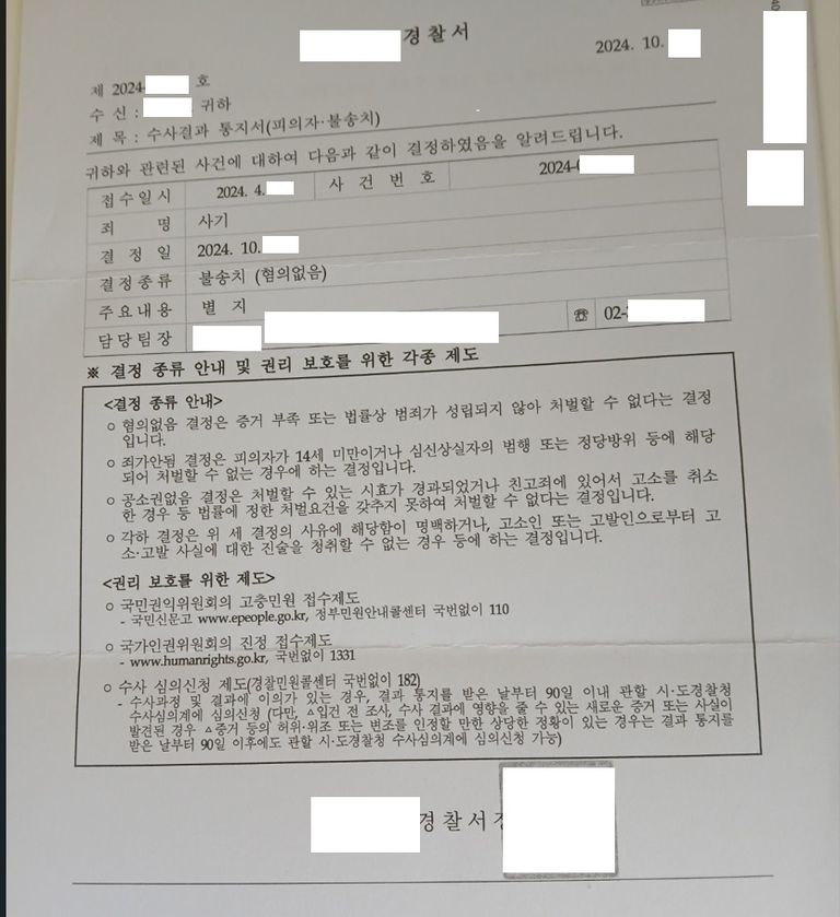 경찰은 변호인의 의견을 적극 수용하여 사기죄 전체에 대해 무혐의 처분을 내렸고, 인터폴 적색수배도 해제하였습니다.