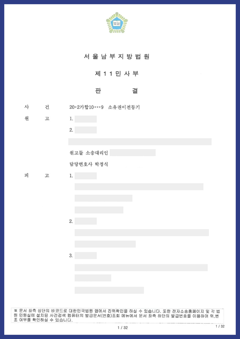피상속인이 사망하고, 제3자인 원고들이 피상속인의 부동산을 사후에 증여받기로 하는 사인증여계약을 체결하였다고 주장하면서 공동상속인들을 상대로 소송을 제기한 사건입니다.