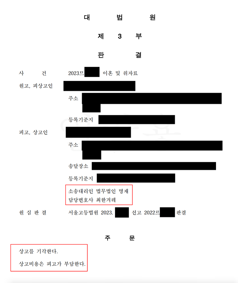 1심부터 최한겨레 변호사를 선임했다면 어땠을까? 하는 아쉬움이 남는 이혼소송 사례입니다.