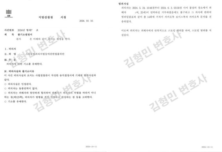 스토킹처벌법위반죄에 대하여 교육이수 조건 없는 기소유예 처분이 내려진 사례가 있어 소개합니다.