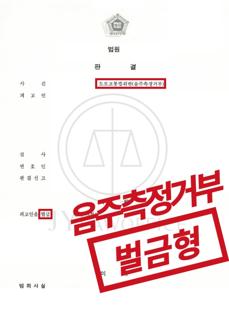 이와 같은 변호인의 조력에 따라, 의뢰인은 '음주측정거부'혐의에 대해 벌금형 판결을 받고 사건을 마무리할 수 있었습니다.