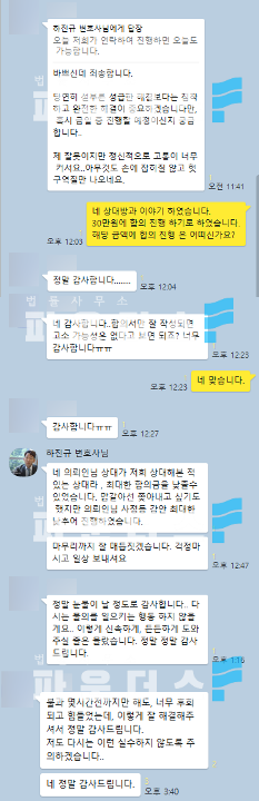 이에 변호인은 의뢰인에 통매음 헌터 행위임을 경고하며 쫓아내는 방법을 안내하였으나, 의뢰인은 추후 고소에 이를 수 있는 점과 그로 인해 자신의 직업에 영향이 갈 수 있는 점을 두려워하는 상황으로 고소 전 합의를 진행하길 희망하였습니다.