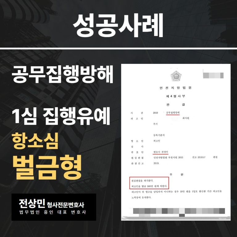 따라서, 공무집행방해죄와 같은 범죄에 연루되어 처벌받을 위기라면, 선처받기 위해서라도 성공사례와 감사후기로 실력이 보장된 “형사 전문 전상민 변호사”에게 상담을 요청하셔서 법적인 조력을 받으시길 바랍니다.