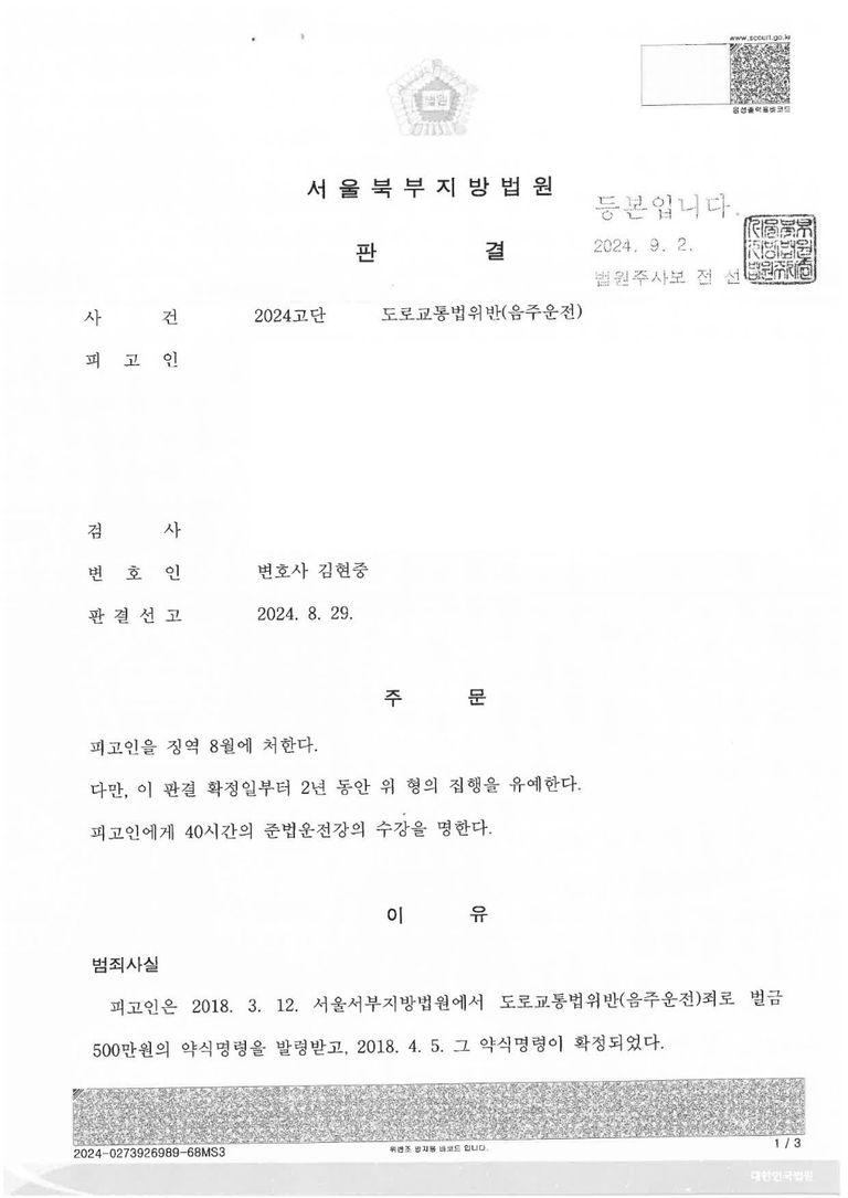 피의자는 과거 3번의 음주운전 전과가 있었습니다. 또한 음주운전 이외에 다른 전과까지 합치면 12번의 전과가 있는 상황 이었습니다.