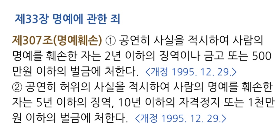 명에훼손죄 처벌