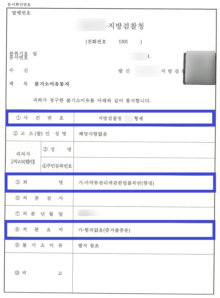 불기소이유통지서