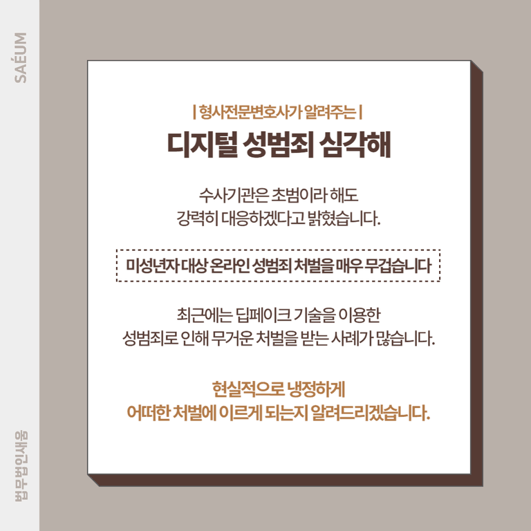 단순히 긍정적인 대답이나 이상적인 답변을 원하는 분들이라면 불편감을 느낄 수 있다는 점 미리 말씀을 드립니다. 앞서 서두의 사건과 같이 N번방 사건이 발생한 이후로 미성년자 대상 온라인 성범죄의 수위는 매우 높아졌습니다.