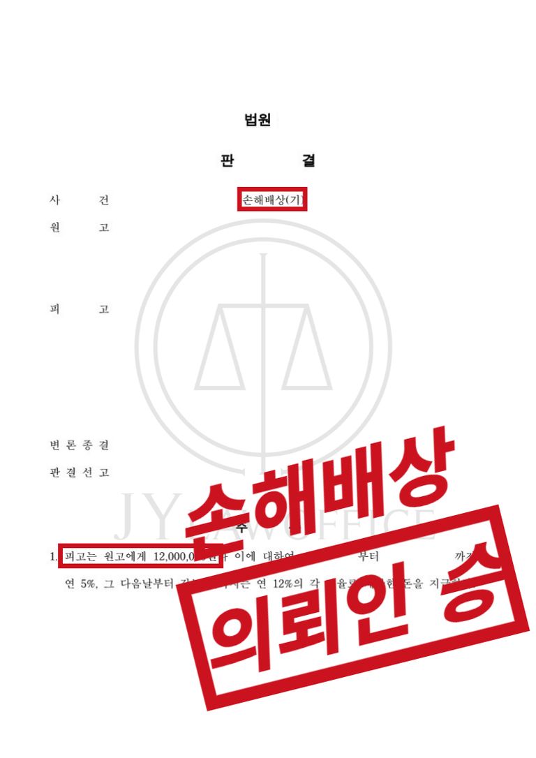 이와 같은 변호사의 노력에 따라, 법원은 가해자에게 의뢰인에게 위자료 12,000,000원을 지급하라는 판결을 내렸습니다.