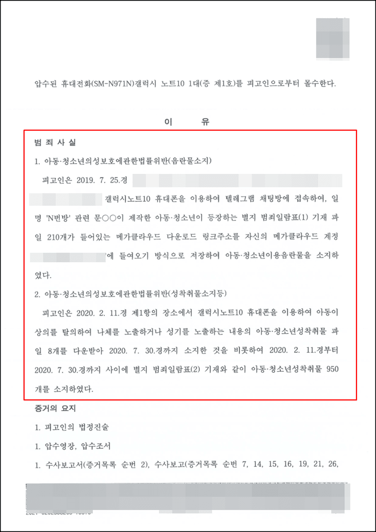 본 사건 의뢰인께선 몇 년 전 세상을 떠들썩하게 했던 n번방 아동·청소년 성착취물 사건에서 아동청소년 성착취물 및 음란물을 다운로드 받아 소지한 혐의로 정식 기소되었습니다.