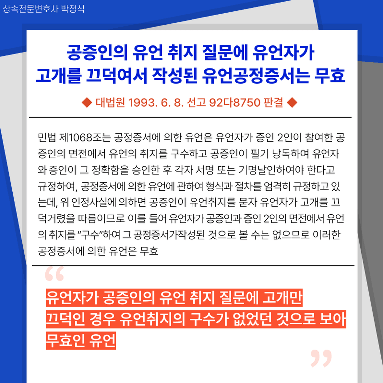 ![[상속전문변호사] 무효인 유언공증과 유효한 유언공증(판례 중심)](/_next/image?url=https%3A%2F%2Fd2ai3ajp99ywjy.cloudfront.net%2Fuploads%2Ftitleimage%2Foriginal%2F5c23283a0d2b63a9027bed80-original.jpg&w=3840&q=75)