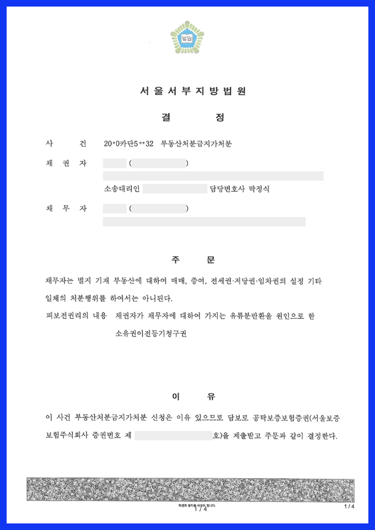 그러나 해당 부동산은 채무자의 부친이 소유하고 있던 부동산으로 부친 사망 이후 상속인들이 협의하여 우선 모친인 피상속인 명의로 상속을 하고, 나중에 모친 사망 이후 3형제자매가 나누기로 했던 부동산이므로 피상속인이 이를 채무자에게만 유증한다는 유언공증을 할 리가 없고, 위 유언공증을 피상속인의 의사에 반하는 것으로 무효라고 주장하면서 장남인 채무자를 상대로 유언공증 무효 및 유류분반환청구를 하기로 하고, 우선 다른 형제들은 채권자의 유류분반환청구권을 피보전권리로 하여 부동산처분금지가처분신청을 한 사안입니다.