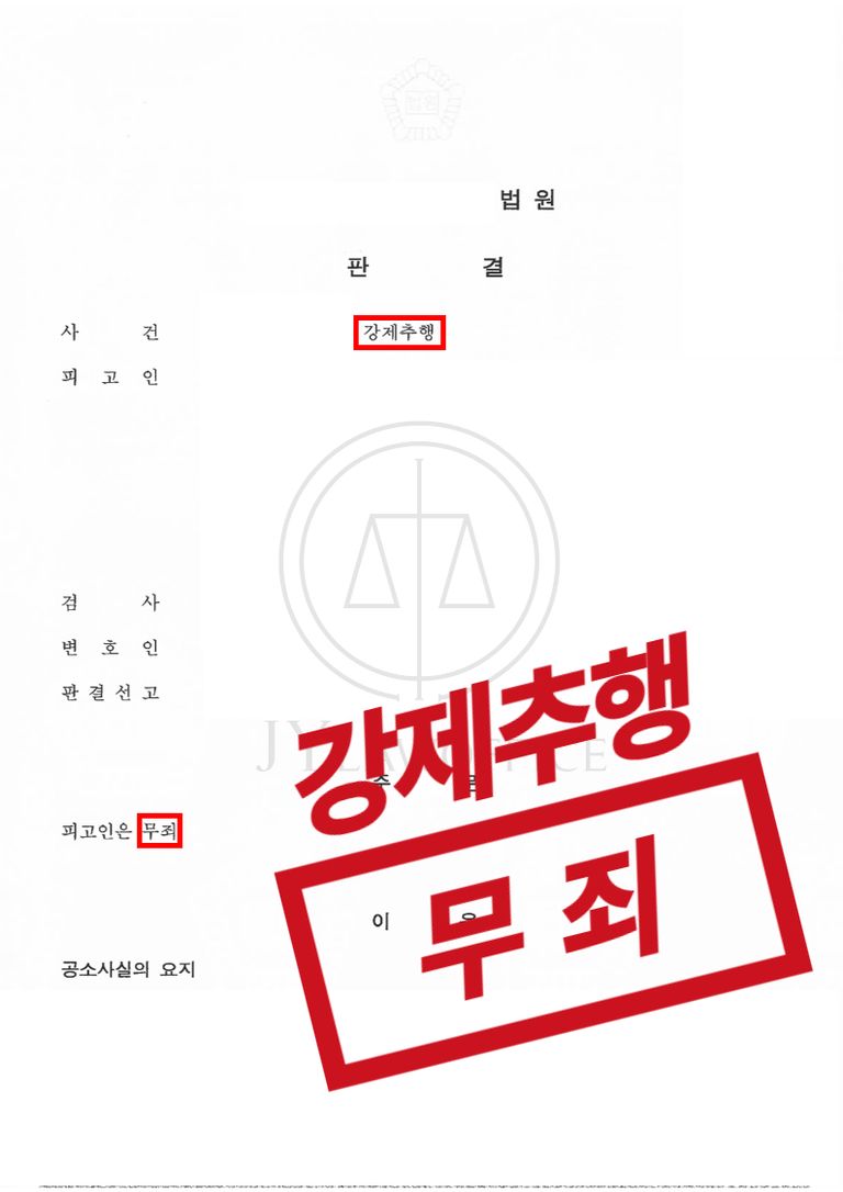 이와 같은 변호인의 조력에 따라, 의뢰인은 법원으로부터 무죄 판결을 받고 사건을 무사히 종결시킬 수 있었습니다.