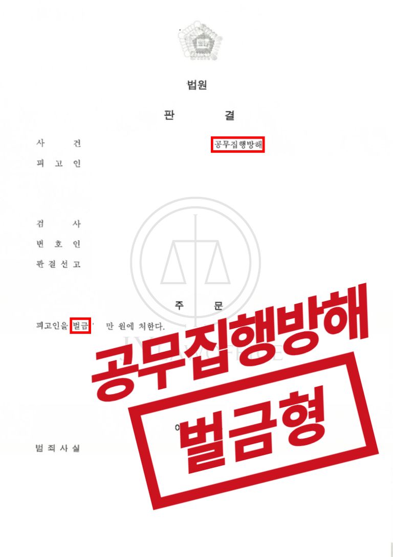 이와 같은 변호인의 조력에 의뢰인은 공무집행방해 혐의에 대해 벌금형의 판결을 받고 사건을 종결시킬 수 있었습니다.
