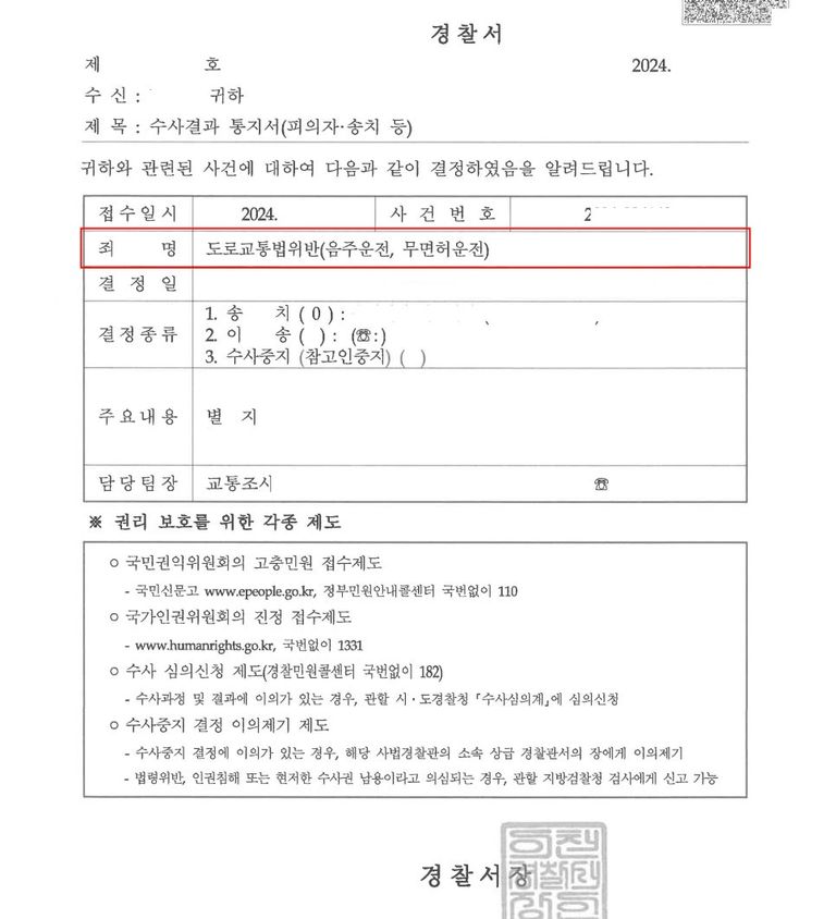 이에 A씨는 '무면허', '음주운전' 혐의로 수사기관으로부터 조사를 받게 되었습니다.