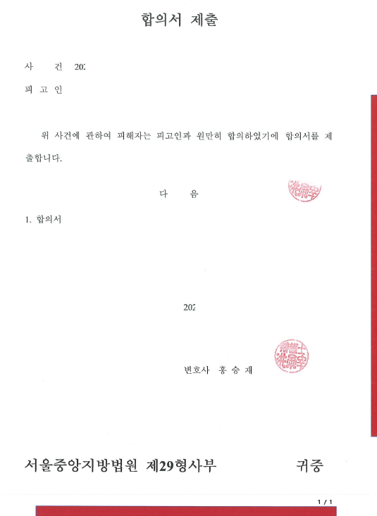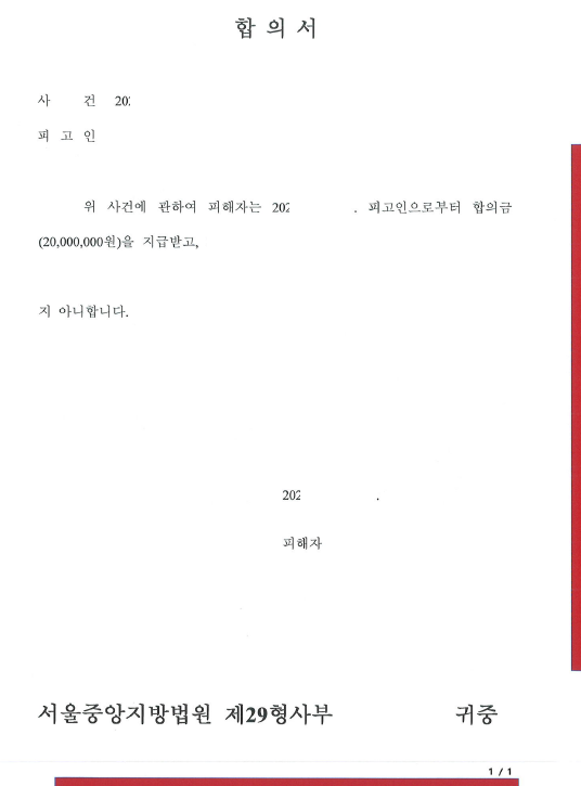 사과문 및 합의금 2,000만 원 등