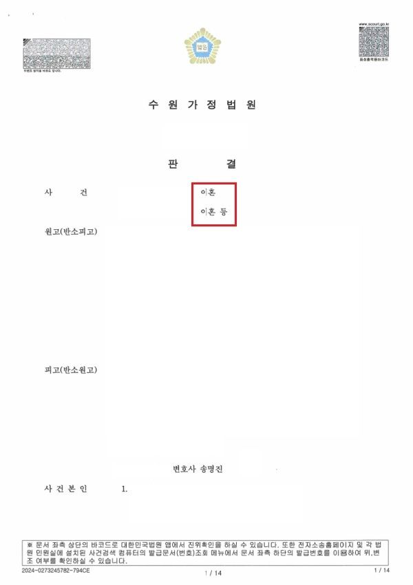 우리 의뢰인분은 이혼 소송 시작할 당시