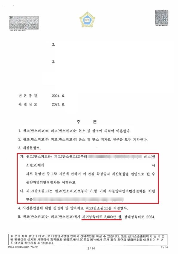 양육권 및 재산분할(분양권 포함) 승소 사안입니다.