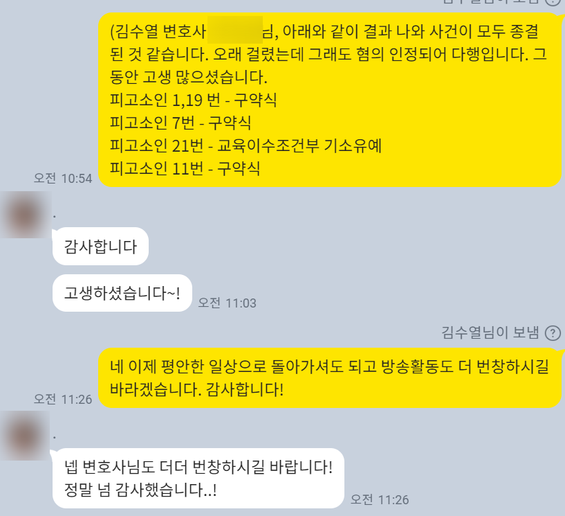 의뢰인분은 버튜버라서 고소가 어렵다는 말만 듣다가 반신반의 맡겼는데 좋은 결과를 얻어내어 너무 기뻐하셨습니다.