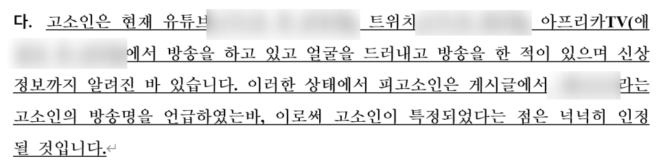 저희는 의뢰인분과 상담시부터 <방송활동을 하면서 신상정보를 공개하거나 얼굴을 드러낸 적이 있는지> 꼼꼼하게 여쭤보았고, 다행히도 의뢰인분은 지금은 버튜버로 활동하고 있으나 이전에는 잠깐 실제 얼굴을 공개하며 방송한 적이 있었고, 아직 인터넷에 흔적이 남아있어 증명도 가능하였습니다.