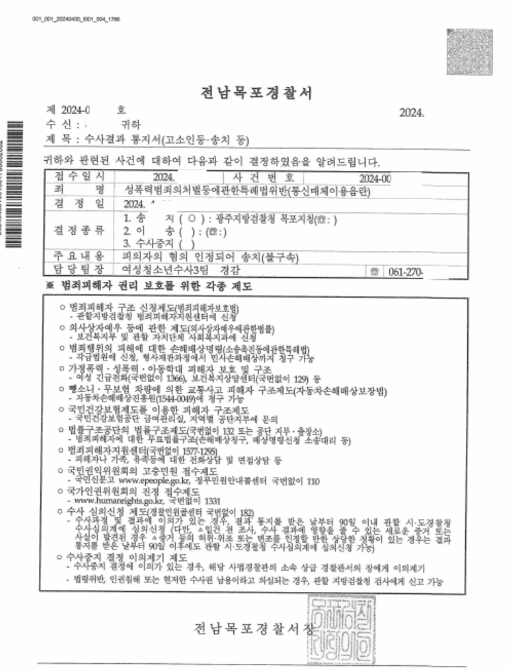 성폭력범죄의처벌등에관한특례법위반(통신매체이용음란)에 대한 고소대리를 맡아 피의자의 혐의가 인정된다고 판단하여 송치되었던 사안입니다