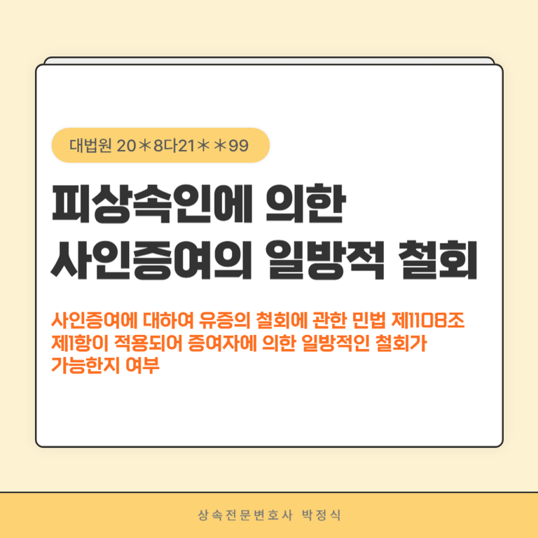 ![[상속전문변호사] 피상속인에 의한 사인증여의 일방적 철회](/_next/image?url=https%3A%2F%2Fd2ai3ajp99ywjy.cloudfront.net%2Fuploads%2Ftitleimage%2Foriginal%2F5f103f6632ce3e02d8e86bb4-original.jpg&w=3840&q=75)