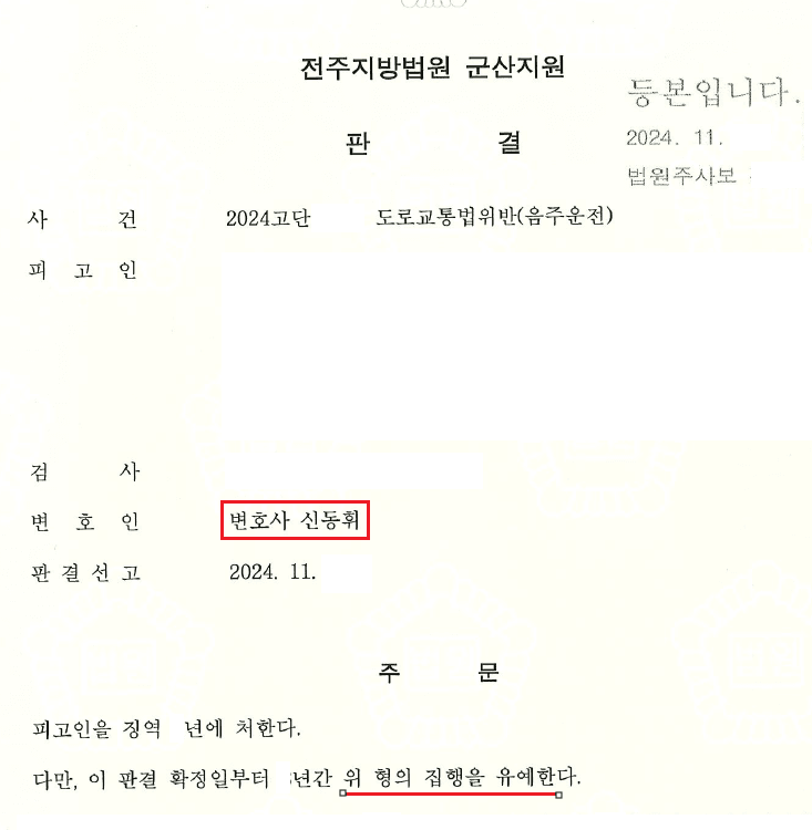 의뢰인은 과거 10년 이내에 2차례의 음주운전 전과가 있었고, 이 사건에서도 혈중알코올농도가 높아 실형 선고가 유력한 상황이었습니다.