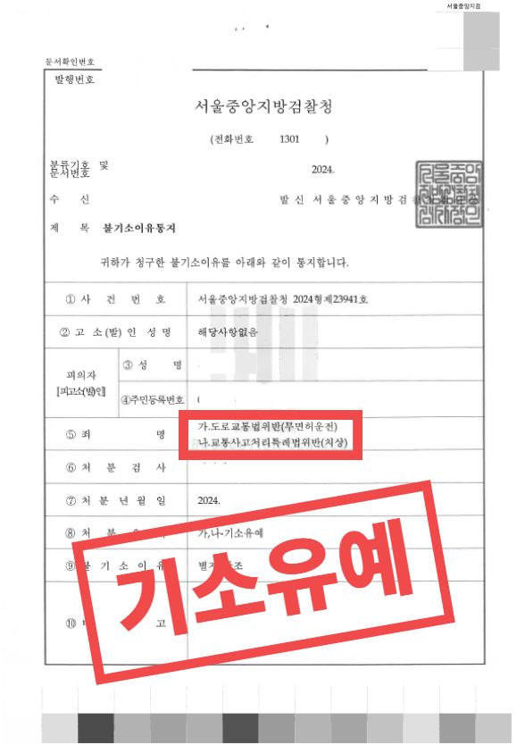 무면허운전 교통사고, ‘기소유예’로 선처받은 사례