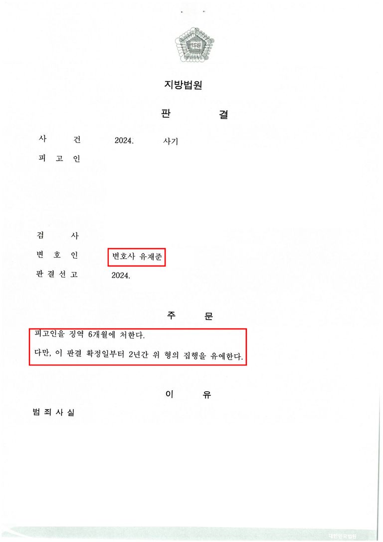이 사건을 보고 오해하시면 안 되는 점이 사기 사건은 기본적으로 피해자의 피해를 일부라도 변제를 해야 집행유예 판결의 가능성이 생깁니다. 저의 사례를 보고 피해자에게 조금이라도 변제를 하지 않은채 집행유예 판결을 바랄 경우 구속의 가능성도 있으니 주의하시길 바랍니다.