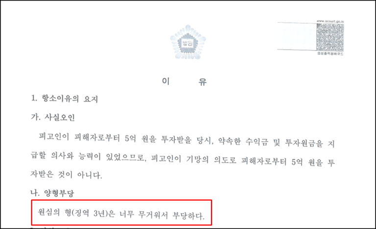 다만 저희 율재의 끈질긴 노력과 빈 틈 없는 항소심 준비로 원심보다 가벼운 처벌을 받게 되어 보람을 느낀 사건입니다.