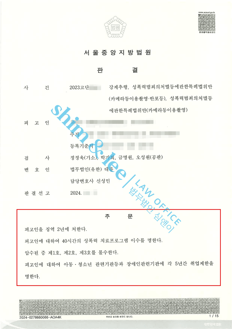 - 가해자에게는 징역 2년, 성폭력 치료강의 40시간 이수 명령, 취업제한 5년을 선고받고 법정 구속 되는 아주 중한 처벌이 내려졌습니다.