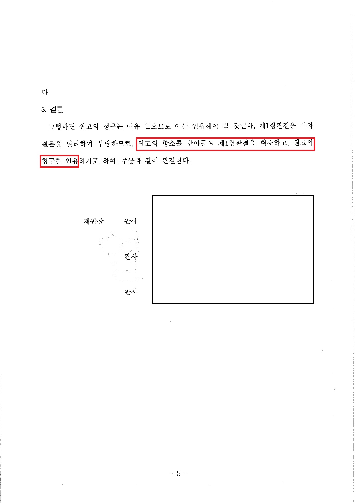 "1심판결 취소!", "혼인무효를 확인"받았습니다.