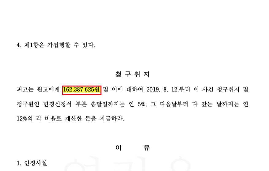 원고는 피고의 재산을 소송을 준비하며 철저히 파악하였고, 피고의 주장을 논리적으로 주장하여 모두 배척시켰습니다. 이에 의뢰인이 청구한 금액이 모두 인용되는 결과를 얻게 되었습니다.
