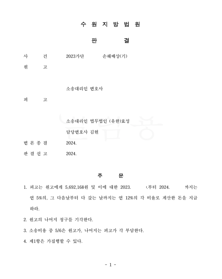 저는 즉각 응소하여 이 사건의 경위, 스키는 어느 정도 위험성이 동반된 스포츠인 점, 원고 역시 주의의무 위반이 있었음 등을 주장 입증하였고 법원은 청구액의 대부분을 감경하는 판결을 선고하였습니다.