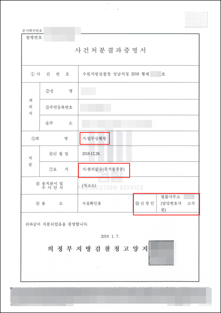 검찰 단계 혐의 없음으로 방어하였습니다.