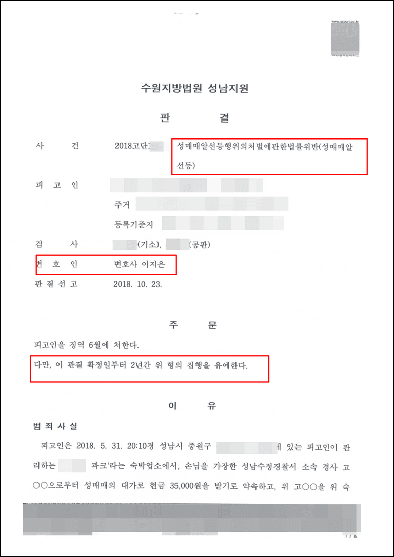 본 사건은 의뢰인이 경기도 성남시에 거주하며 운영 중인 영세한 숙박업소에서 이뤄진 성매매에 대한 경찰의 대대적 단속으로 적발된 사건입니다.