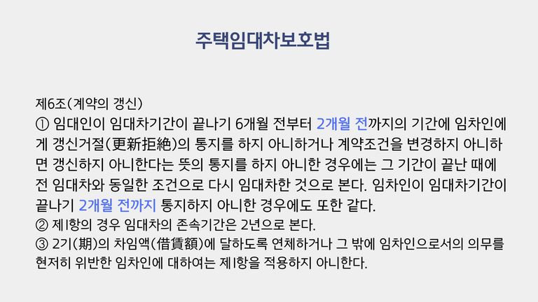 임대차계약을 연장하고 싶지 않으면 적어도 두 달 전에는 상대방에게 “임대차계약을 연장하지 않을 예정이다”라고 통지하여야 한다는 얘기 들어본 적 있으시죠?