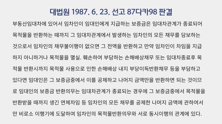 ‘임대차계약이 종료되어 임대차보증금을 반환할 의무가 있는 것은 인정하나, 임대차목적물을 인도받을 때까지는 보증금을 반환할 수 없다’는 항변