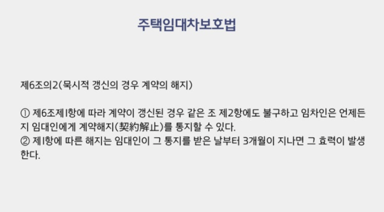 ② 주택임대차보호법 제6조의2에 따라 즉시 임대인에게 계약해지를 통지하여 3개월 뒤에 임대차계약이 종료되도록 조치하여야 합니다.