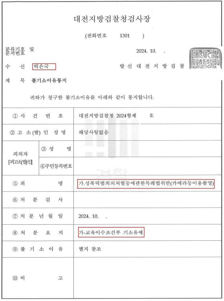 3. 대전지방검찰청: 기소유예 처분