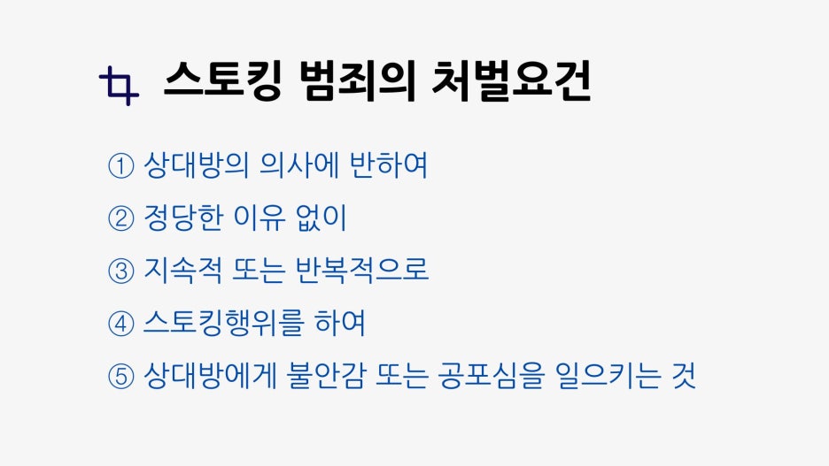 중요한 점은 스토킹처벌법은 “스토킹행위”에 대한 처벌규정은 두고 있지 않고, "스토킹범죄"에 대한 처벌규정만을 두고 있다는 것입니다.