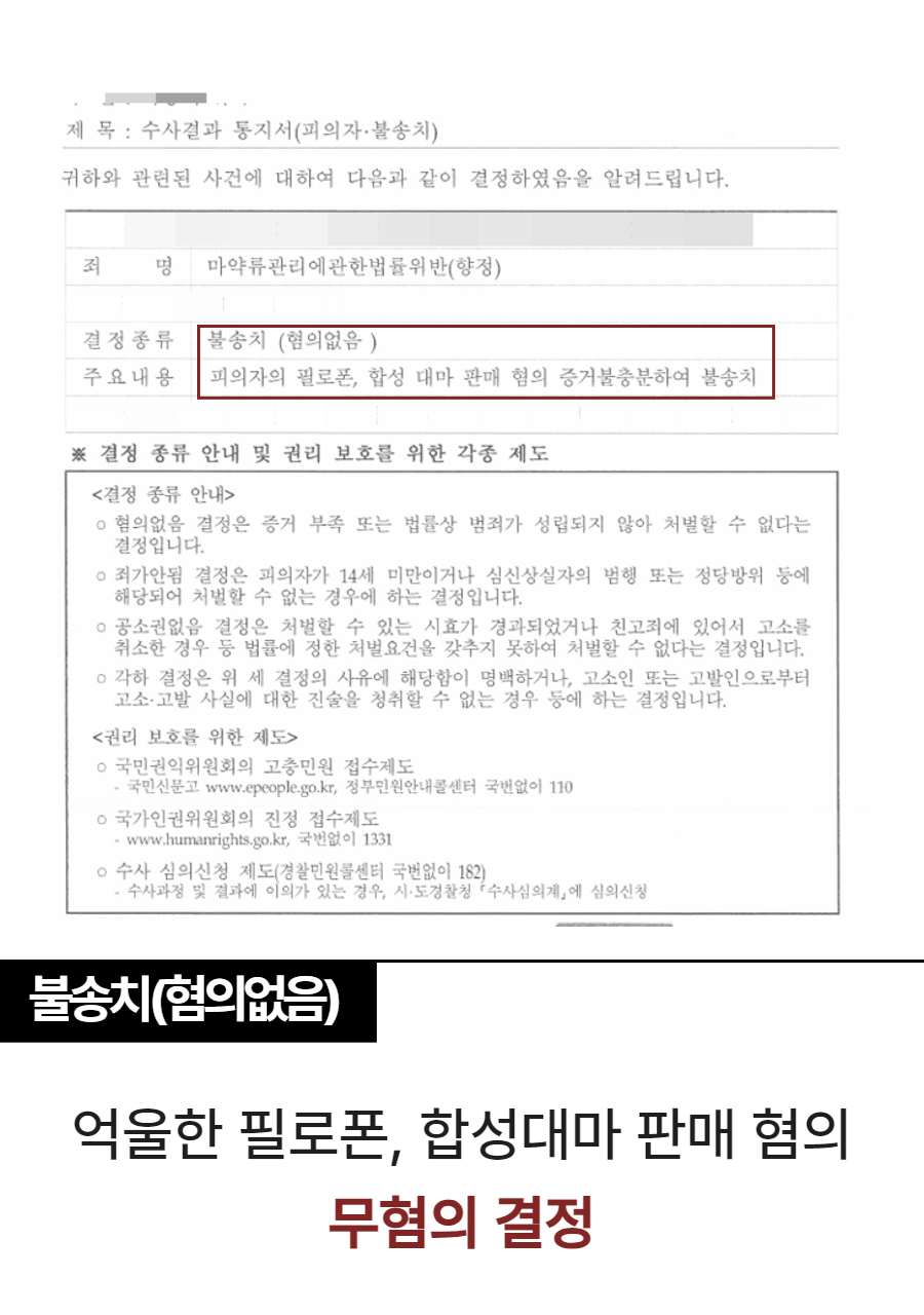 ![🚩[혐의없음] 필로폰 및 합성대마 판매 불송치(혐의없음) 사례](/_next/image?url=https%3A%2F%2Fd2ai3ajp99ywjy.cloudfront.net%2Fuploads%2Ftitleimage%2Foriginal%2F5b7d01d75ac276945febdf7a-original.jpg&w=3840&q=75)