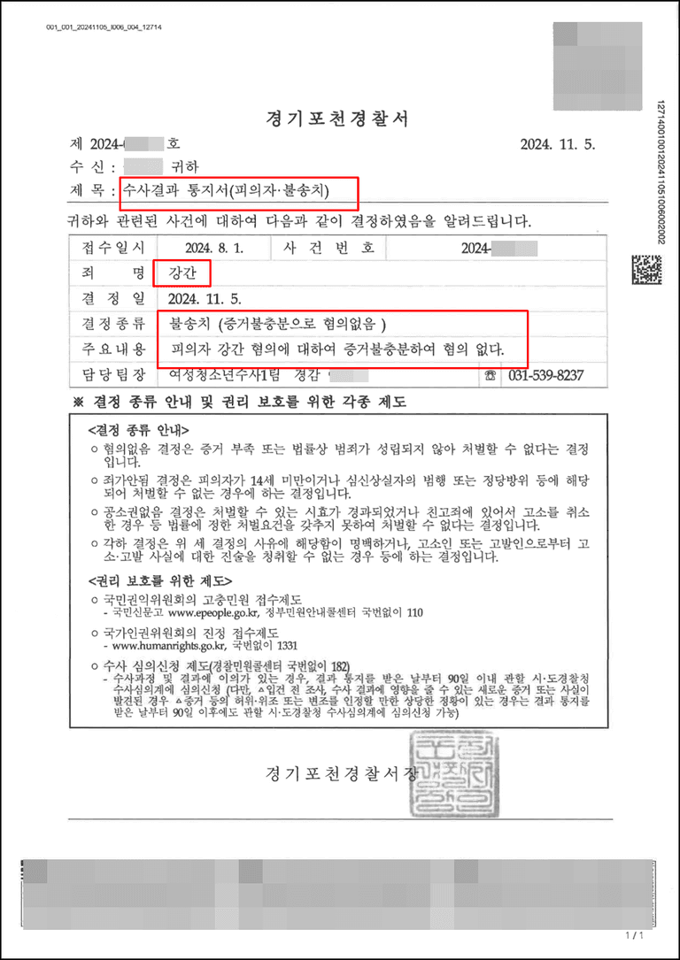 경찰 단계 '불송치 결정'으로 방어하였습니다.